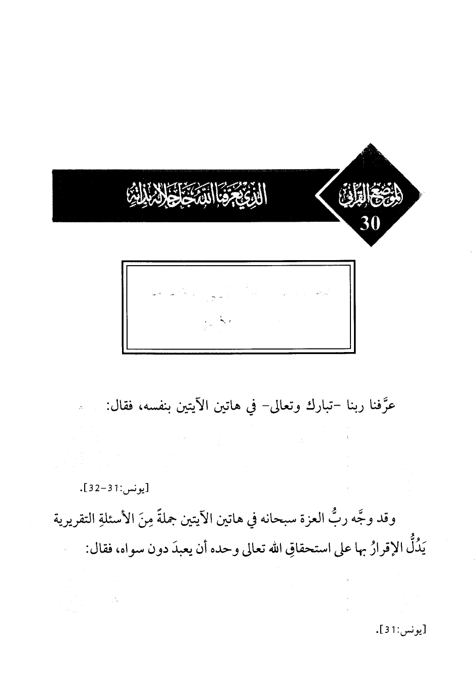 عرَّفنا ربُّنا - تبارك وتعالى - في هاتين الآيتين بنفسه, فقال: {قُلْ مَنْ يَرْزُقُكُمْ مِنَ السَّمَاءِ وَالْأَرْضِ أَمَّنْ يَمْلِكُ السَّمْعَ وَالْأَبْصَارَ وَمَنْ يُخْرِجُ الْحَيَّ مِنَ الْمَيِّتِ وَيُخْرِجُ الْمَيِّتَ مِنَ الْحَيِّ وَمَنْ يُدَبِّرُ الْأَمْرَ فَسَيَقُولُونَ اللَّهُ فَقُلْ أَفَلَا تَتَّقُونَ * فَذَلِكُمُ اللَّهُ رَبُّكُمُ الْحَقُّ فَمَاذَا بَعْدَ الْحَقِّ إِلَّا الضَّلَالُ فَأَنَّى تُصْرَفُونَ} [يونس: 31 - 32].