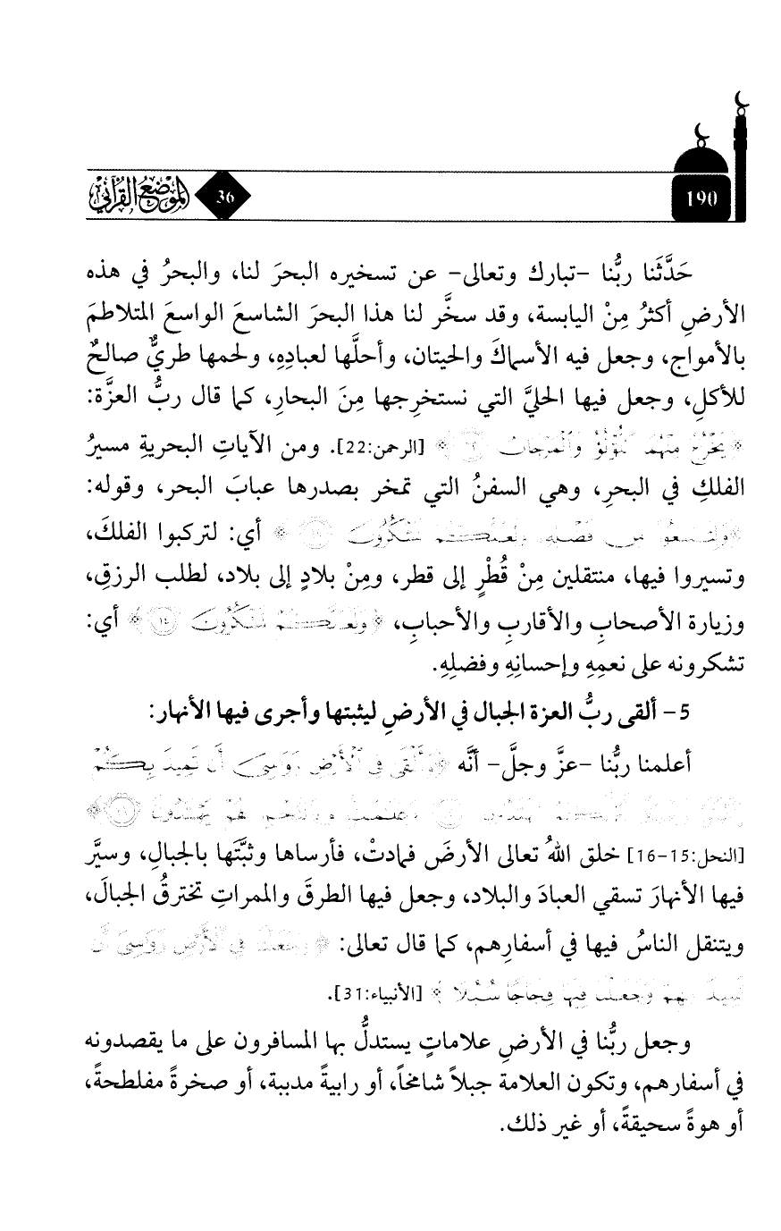 وجعل ربُّنا في الأرض علاماتٍ يستدلُّ بها المسافرون على ما يقصدونه في أسفارهم, وتكون العلامة جبلاً شامخاً, أو رابيةً مدببة, أو صخرةً مفلطحةً, أو هوةً سحيقةً, أو غير ذلك.