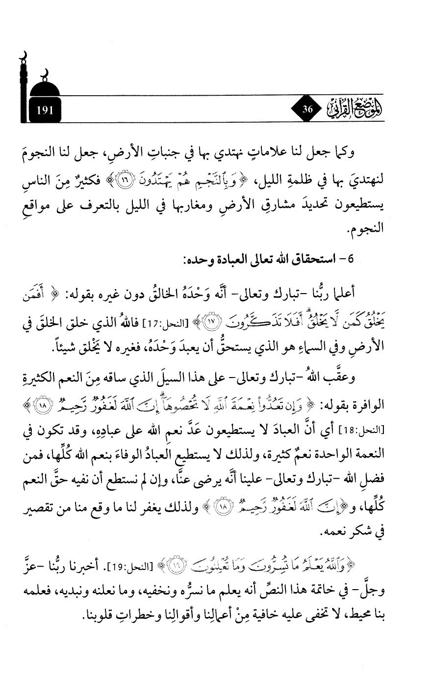 وكما جعل لنا علاماتٍ نهتدي بها في جنبات الأرض, جعل لنا النجوم لنهتدي بها في ظلمة الليل, {وَبِالنَّجْمِ هُمْ يَهْتَدُونَ} فكثيرٌ من الناس يستطيعون تحديد مشارق الأرض ومغاربها في الليل بالتعرف على مواقع النجوم.