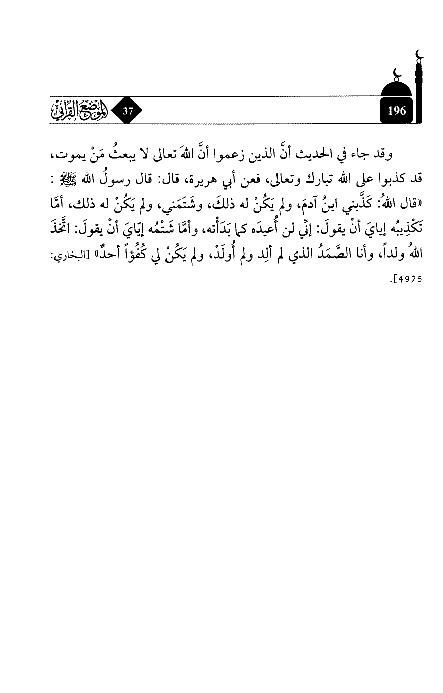 وقد جاء في الحديث أنَّ الذين زعموا أن الله تعالى لا يبعث من يموت, قد كذبوا على الله تبارك وتعالى, فعن أبي هريرة, قال: قال رسول الله - صلى الله عليه وسلم -: «قال الله: كذَّبني ابن آدم, ولم يكن له ذلك, وشتمني, ولم يكن له ذلك, أمَّا تكذيبه إياي أن يقول: إنِّي لن أعيده كما بدأته, وأمَّا شتمه إياي أن يقول: اتَّخذ الله ولداً, وأنا الصمد الذي لم ألد ولم أُولد, ولم يكن لي كفؤاً أحدٌ» [البخاري: 4975].