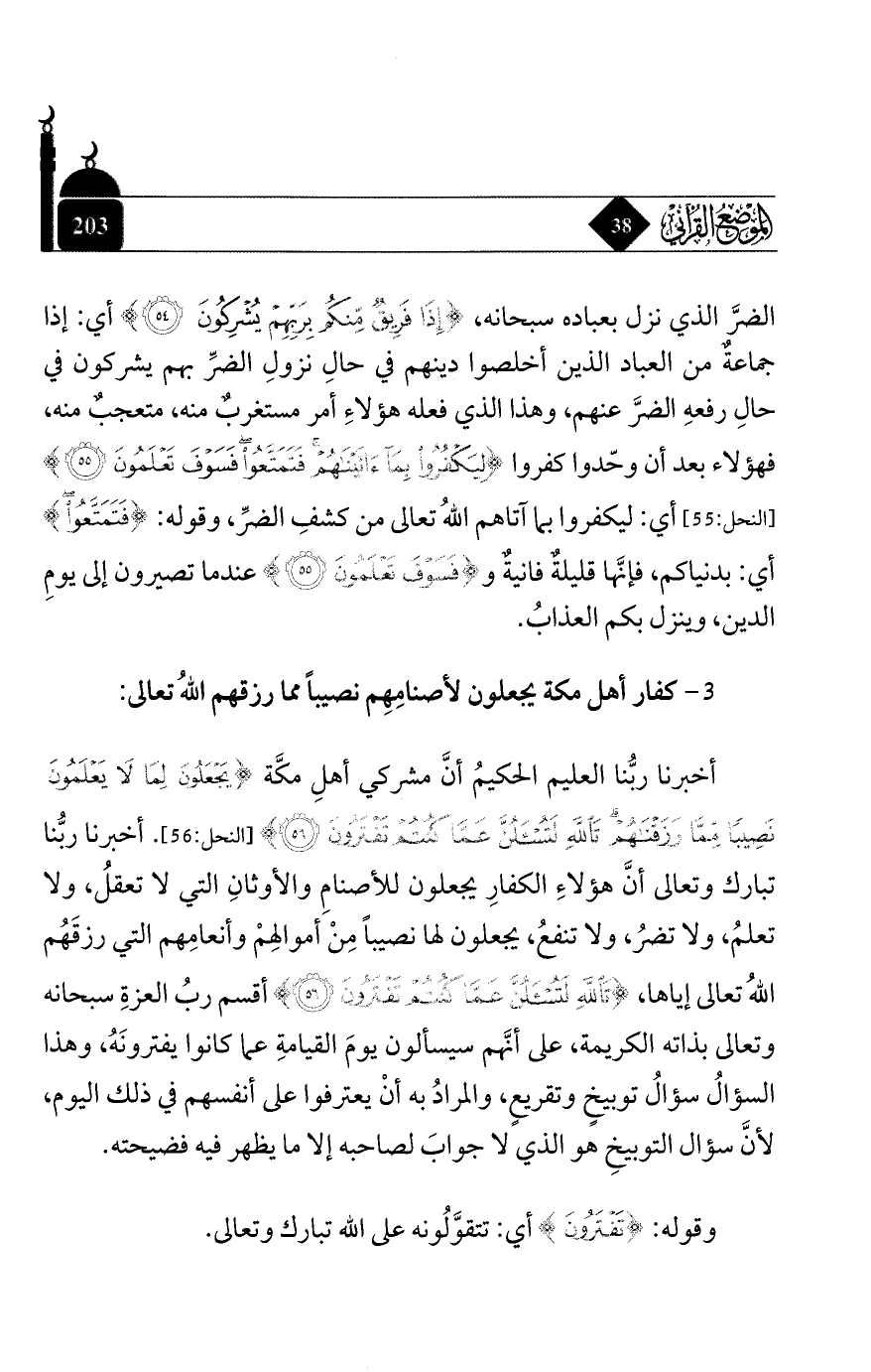 3 - كفار أهل مكة يجعلون لأصنامهم نصيباً مما رزقهم الله تعالى: