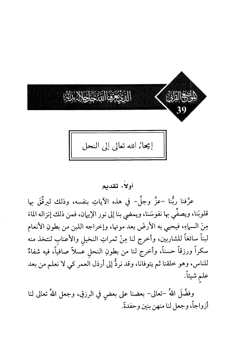 عرَّفنا ربُّنا - عزَّ وجلَّ - في هذه الآيات بنفسه, وذلك ليرقِّق بها قلوبنا, ويصفِّي بها نفوسنا, ويمضي بنا إلى نور الإيمان, فمن ذلك إنزاله الماء من السماء, فيحيي به الأرض بعد موتها, وإخراجه اللبن من بطون الأنعام لبنًا سائغًا للشاربين, وأخرج لنا من ثمرات النخيل والأعناب لنتخذ منه سكراً ورزقاً حسناً, وأخرج لنا من بطون النحل عسلاً صافياً, فيه شفاء للناس, وهو خلقنا ثم يتوفانا, وقد نردُّ إلى أرذل العمر كي لا نعلم من بعد علمٍ شيئًا.
