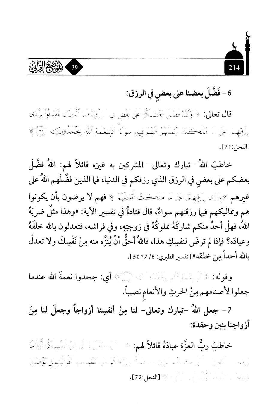 قال تعالى: {وَاللَّهُ فَضَّلَ بَعْضَكُمْ عَلَى بَعْضٍ فِي الرِّزْقِ فَمَا الَّذِينَ فُضِّلُوا بِرَادِّي رِزْقِهِمْ عَلَى مَا مَلَكَتْ أَيْمَانُهُمْ فَهُمْ فِيهِ سَوَاءٌ أَفَبِنِعْمَةِ اللَّهِ يَجْحَدُونَ} [النحل: 71].