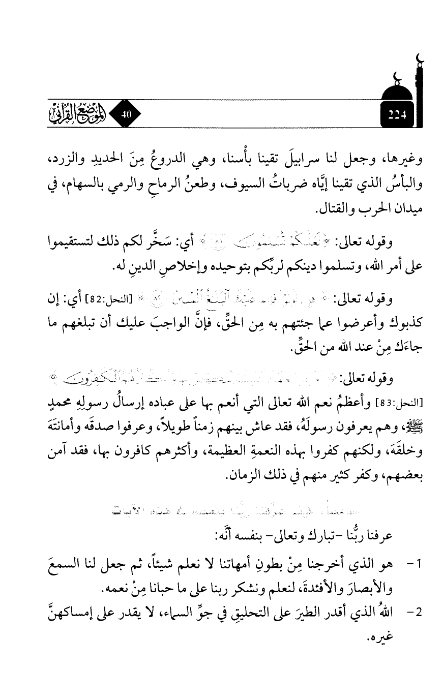 وقوله تعال: {يَعْرِفُونَ نِعْمَتَ اللَّهِ ثُمَّ يُنْكِرُونَها وَأَكْثَرُهُمُ الْكافِرُونَ} [النحل: 83] وأعظم نعم الله تعالى التي أنعم بها على عباده إرسال رسوله محمدٍ - صلى الله عليه وسلم - , وهم يعرفون رسوله, فقد عاش بينهم زمناً طويلاً, وعرفوا صدقة وأمانته وخلقه, ولكنهم كفروا بهذه النعمة العظيمة, وأكثرهم كافرون بها, فقد آمن بعضهم, وكفر كثير منهم في ذلك الزمان.
