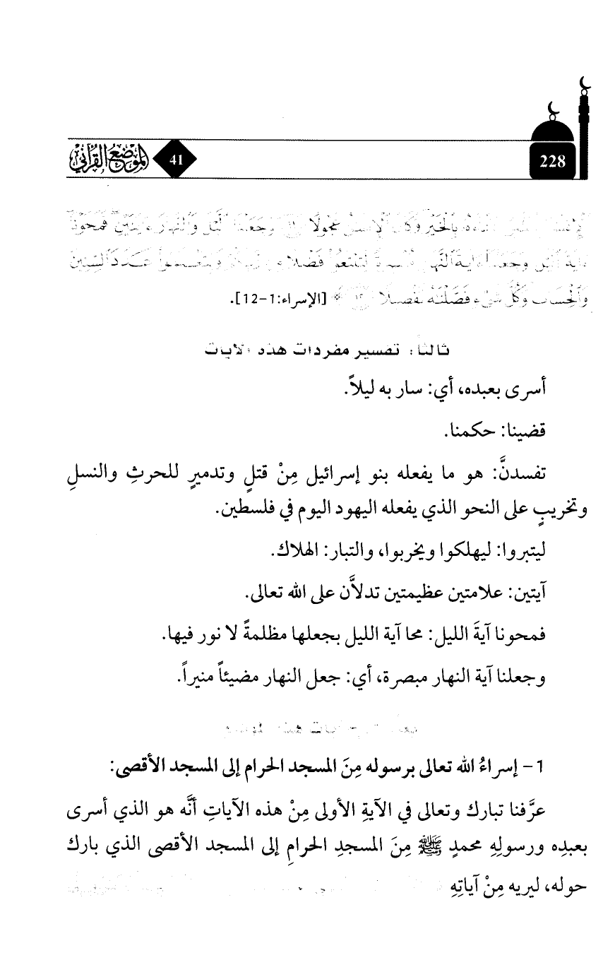 1 - إسراء الله تعالى برسوله من المسجد الحرام إلى المسجد الأقصى: