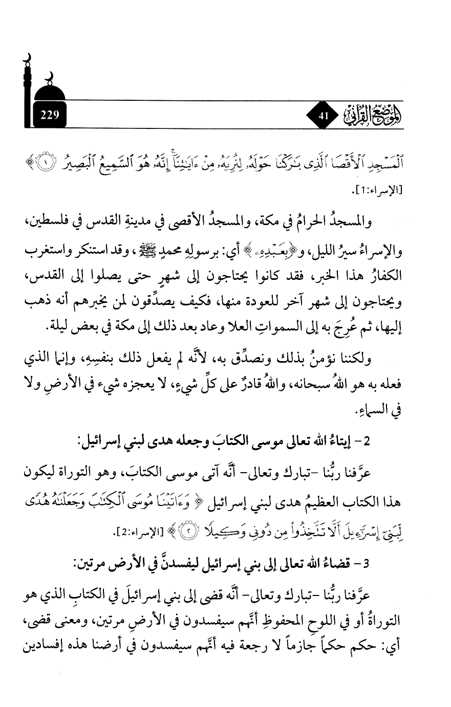الْمَسْجِدِ الْأَقْصَى الَّذِي بَارَكْنَا حَوْلَهُ لِنُرِيَهُ مِنْ آيَاتِنَا إِنَّهُ هُوَ السَّمِيعُ الْبَصِيرُ} [الإسراء].
