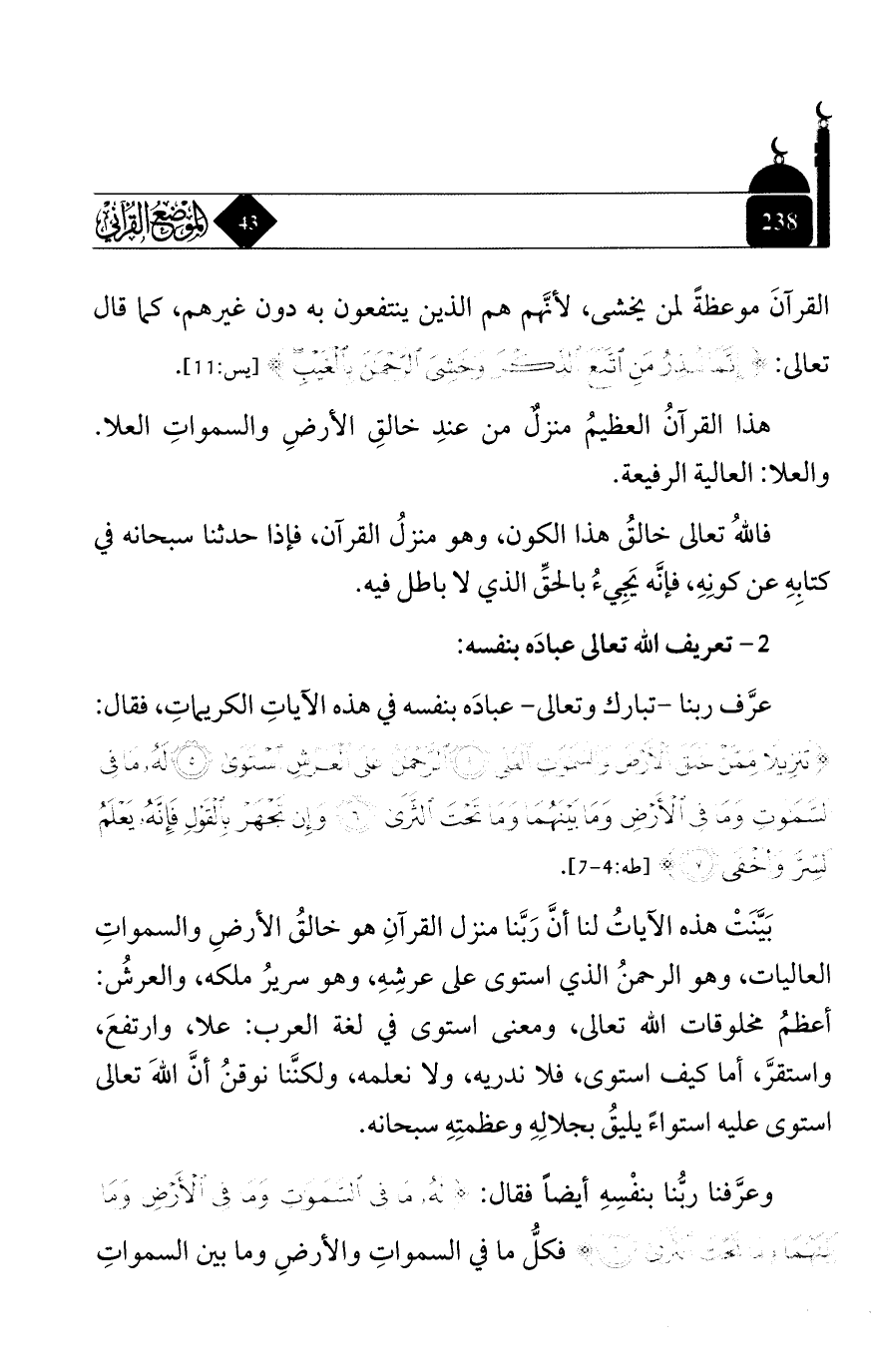 {تَنزِيلا مِّمَّنْ خَلَقَ الأَرْضَ وَالسَّمَاوَاتِ الْعُلَى * الرَّحْمَنُ عَلَى الْعَرْشِ اسْتَوَى * لَهُ مَا فِي السَّمَاوَاتِ وَمَا فِي الأَرْضِ وَمَا بَيْنَهُمَا وَمَا تَحْتَ الثَّرَى * وَإِن تَجْهَرْ بِالْقَوْلِ فَإِنَّهُ يَعْلَمُ السِّرَّ وَأَخْفَى} [طه: 4 - 7].