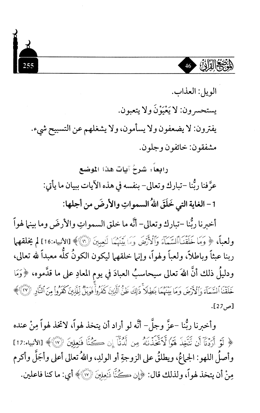 وأخبرنا ربُّنا - عزَّ وجلَّ - أنَّه لو أراد أن يتخذ لهواً، لاتخذ لهواً من عنده {لَوْ أَرَدْنَا أَنْ نَتَّخِذَ لَهْوًا لَاتَّخَذْنَاهُ مِنْ لَدُنَّا إِنْ كُنَّا فَاعِلِينَ} [الأنبياء: 17] وأصل اللهو: الجماع، ويطلق على الزوجة أو الولد، والله تعالى أعلى وأجلَّ وأكرم من أن يتخذ لهواً، ولذلك قال: {إِنْ كُنَّا فَاعِلِينَ} أي: ما كنا فاعلين.