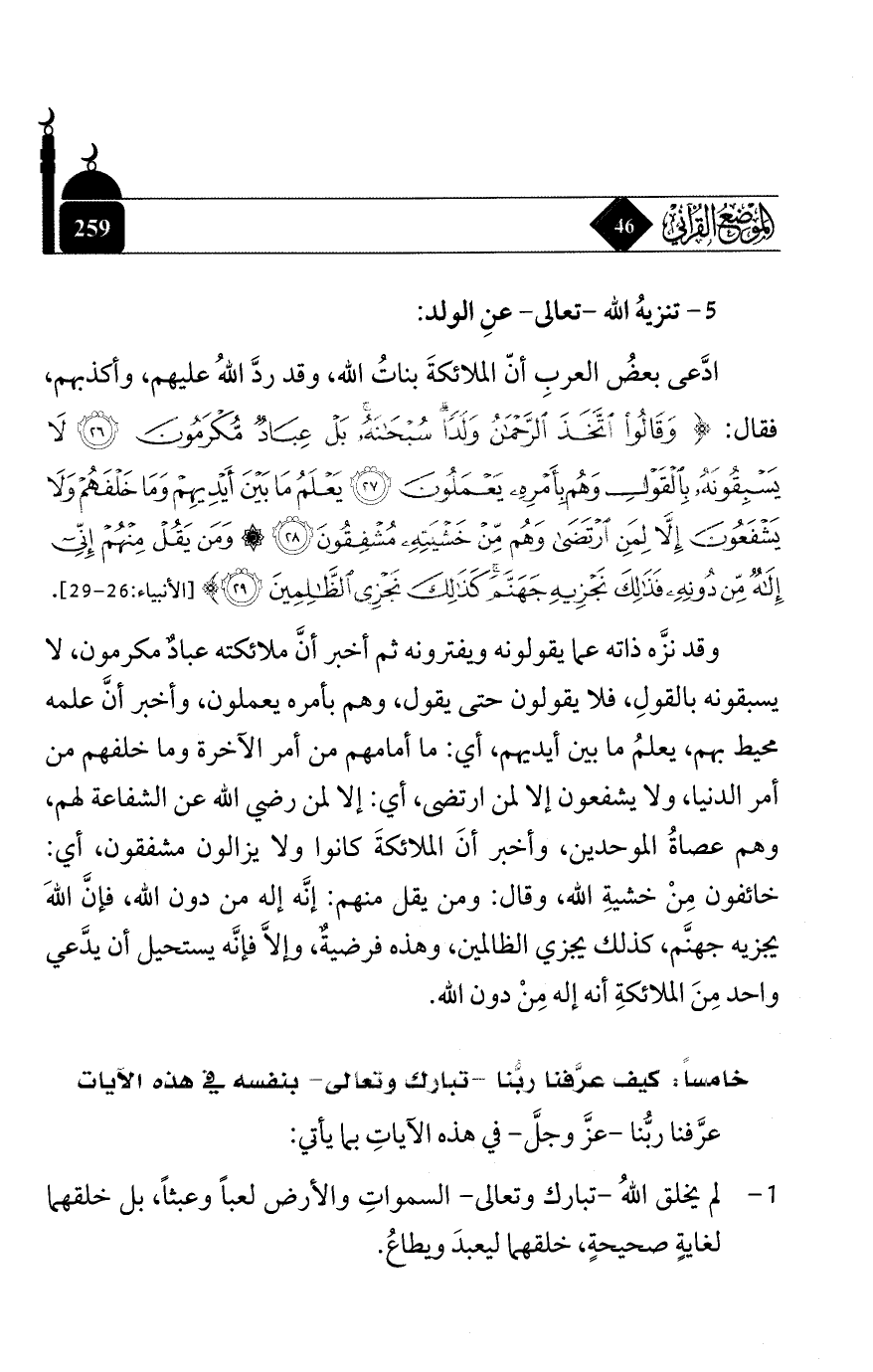 وقد نزَّه ذاته عما يقولونه ويفترونه ثم أخبر أنَّ ملائكته عبادٌ مكرمون، لا يسبقونه بالقول، فلا يقولون حتى يقول، وهم بأمره يعملون، وأخبر أنَّ علمه محيط بهم، يعلم ما بين أيديهم، أي: ما أمامهم من أمر الآخرة وما خلفهم من أمر الدنيا، ولا يشفعون إلا لمن ارتضى، أي: إلا لمن رضي الله عن الشفاعة لهم، وهم عصاة الموحدين، وأخبر أن الملائكة كانوا ولا يزالون مشفقون، أي: خائفون من خشية الله، وقال: ومن يقل منهم: إنَّه إله من دون الله، فإنَّ الله يجزيه جهنَّم، كذلك يجزي الظالمين، وهذه فرضيةٌ، وإلاَّ فإنَّه يستحيل أن يدعي واحد من الملائكة أنه إله من دون الله.