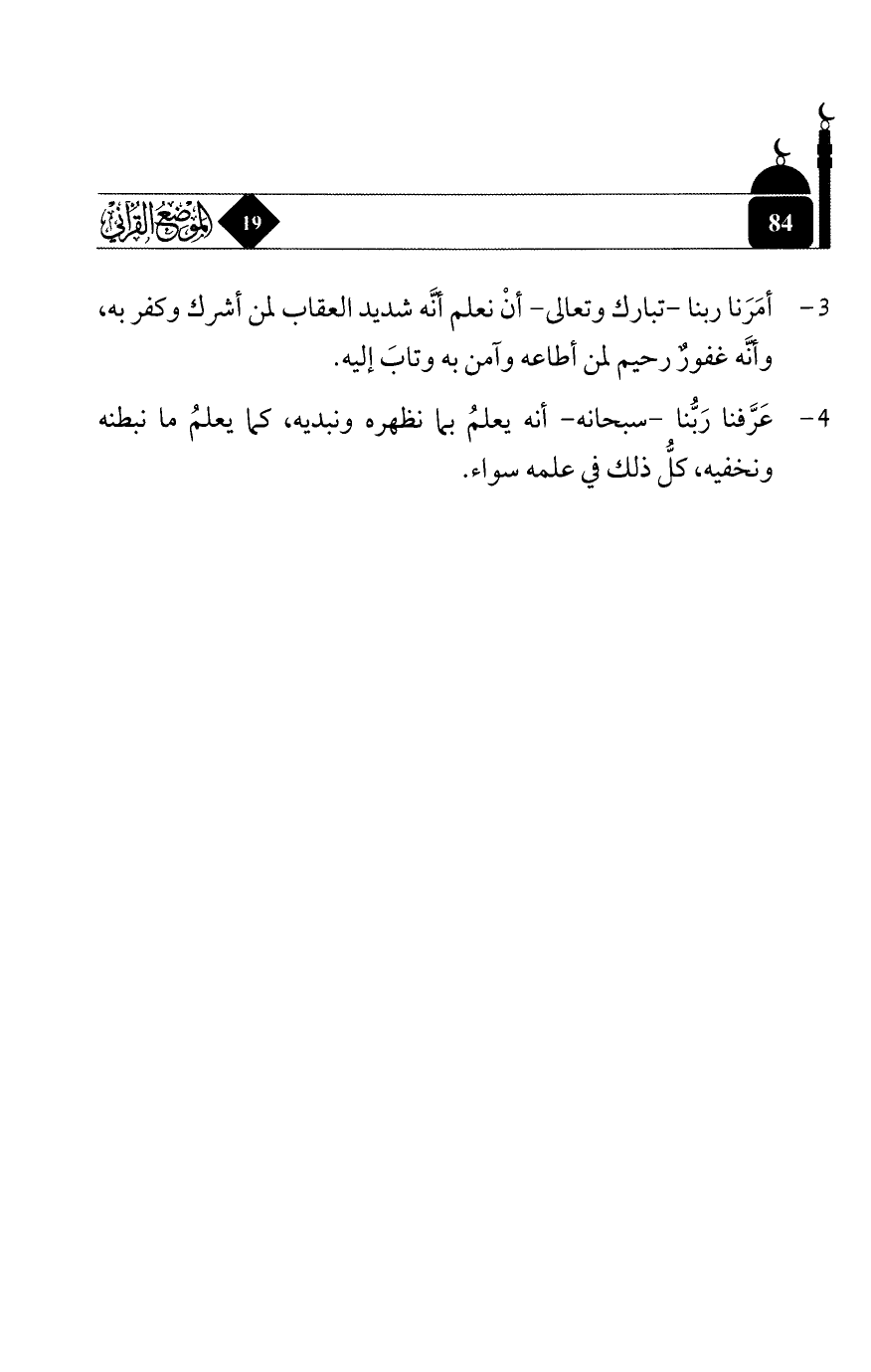 4 - عرَّفنا ربُّنا - سبحانه - أنه يعلم بما نظهره ونبديه، كما يعلم ما نبطنه ونخفيه، كلُّ ذلك في علمه سواء.