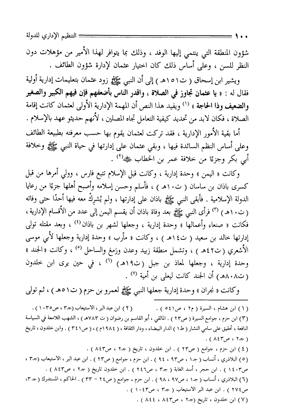 أما بقية الأمور الإدارية، فقد تركت لعثمان يقوم بها حسب معرفته بطبيعة الطائف وعلى أساس النظم السائدة فيها، وبقي عثمان على إدارتها في حياة النبي صلّى الله عليه وسلم وخلافة أبي بكر وجزا من خلافة عمر بن الخطاب رضي الله عنه «2» .