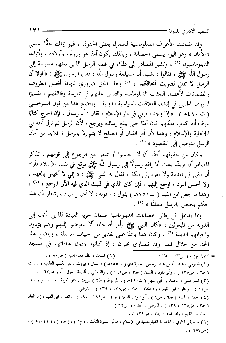 (6) مصطفى التازي، الحصانة الدبلوماسية في الإسلام، مؤتمر السيرة الثالث، (م 6) ، (ط 1) ، (1041 هـ) ، (ص 657) .