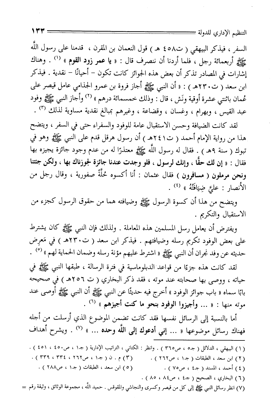 (1) البيهقي، الدلائل (ج 5، ص 365) . وانظر: الكتاني، التراتيب الإدارية (ج 1، ص 450، 451) .