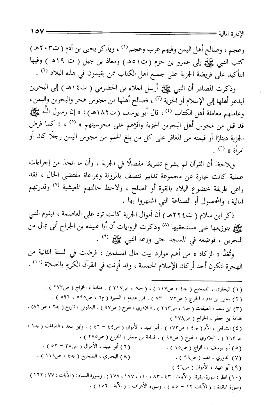 (4) الشافعي، الأم (ج 4، ص 173) . أبو عبيد، الأموال (ص 44- 46) . وابن سعد، الطبقات (ج 1، ص 263) . البلاذري، فتوح (ص 97) . قدامة بن جعفر، الخراج (ص 275) .