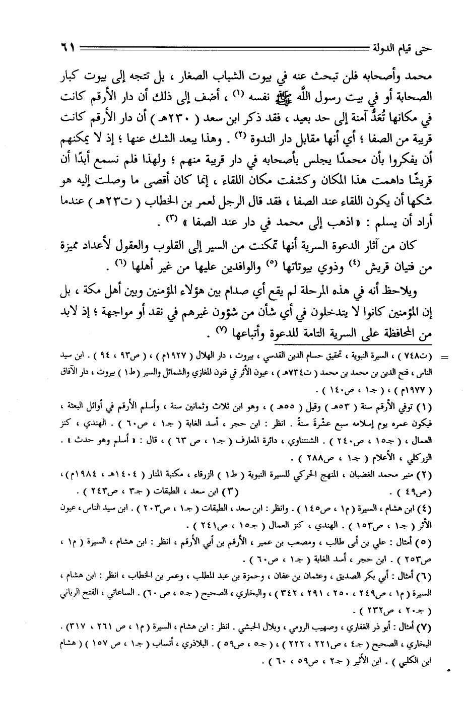 (5) أمثال: علي بن أبى طالب، ومصعب بن عمير، الأرقم بن أبي الأرقم، انظر: ابن هشام، السيرة (م 1، ص 253) . ابن حجر، أسد الغابة (ج 1، ص 60) .