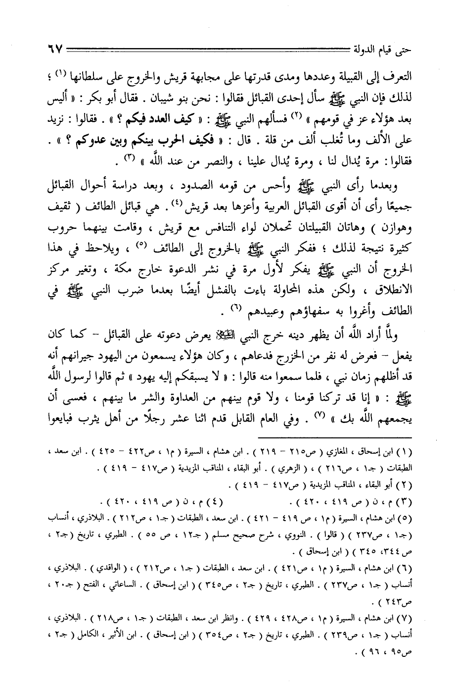 (6) ابن هشام، السيرة (م 1، ص 421) . ابن سعد، الطبقات (ج 1، ص 212) ، (الواقدي) . البلاذري، أنساب (ج 1، ص 237) . الطبري، تاريخ (ج 2، ص 345) (ابن إسحاق) . الساعاتي، الفتح (ج 20، ص 243) .
