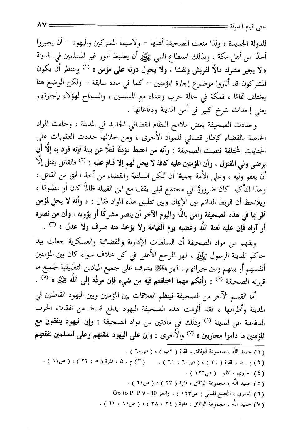 (7) حميد الله، مجموعة الوثائق، فقرة (24، 38) ، (ص 61، 62) .
