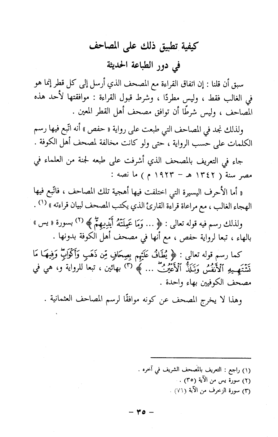 كيفية تطبيق ذلك على المصاحف في دور الطباعة الحديثة: