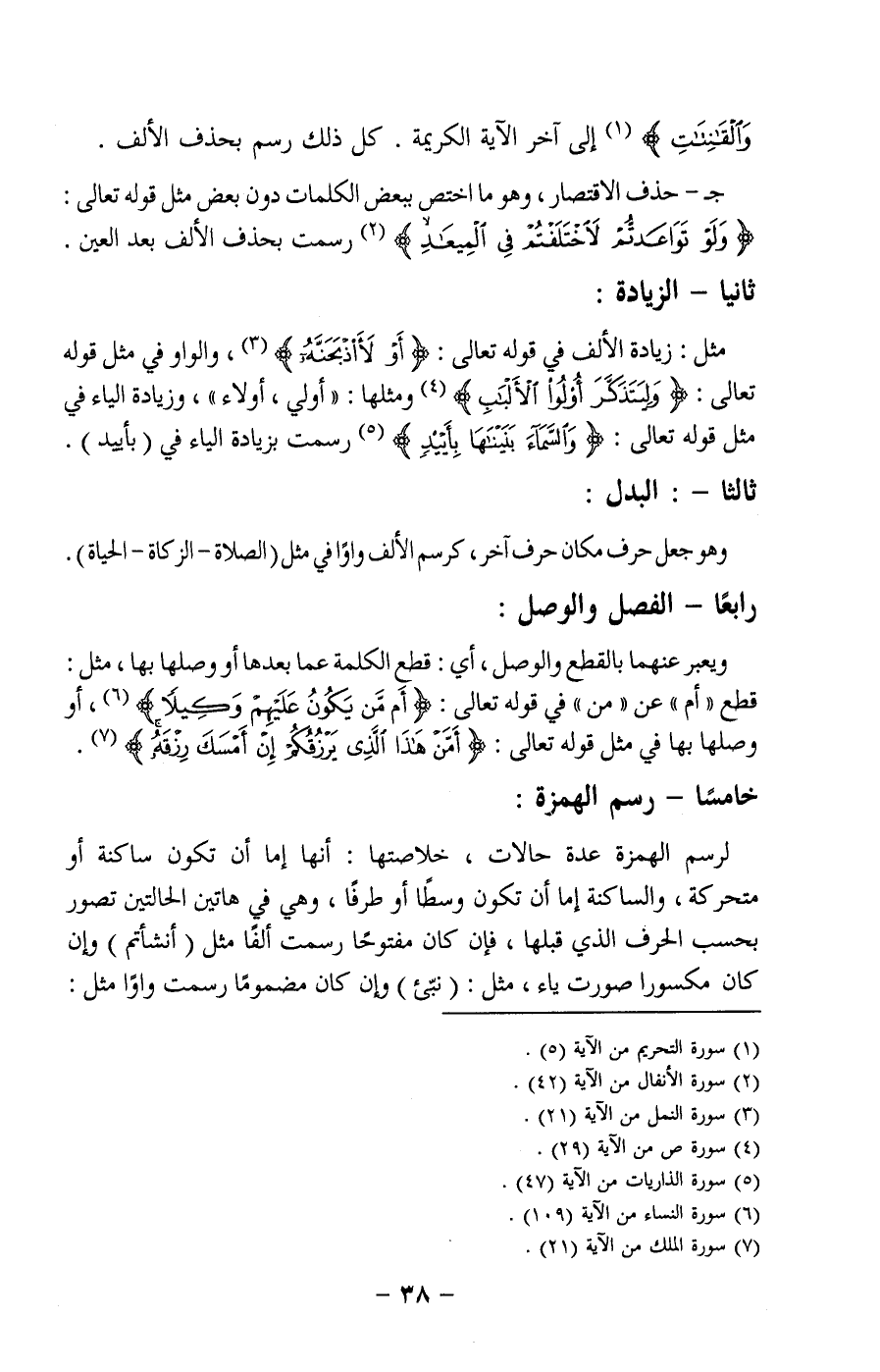 والقنتات"1 إلى آخر الآية الكريمة. كل ذلك رسم بحذف الألف.