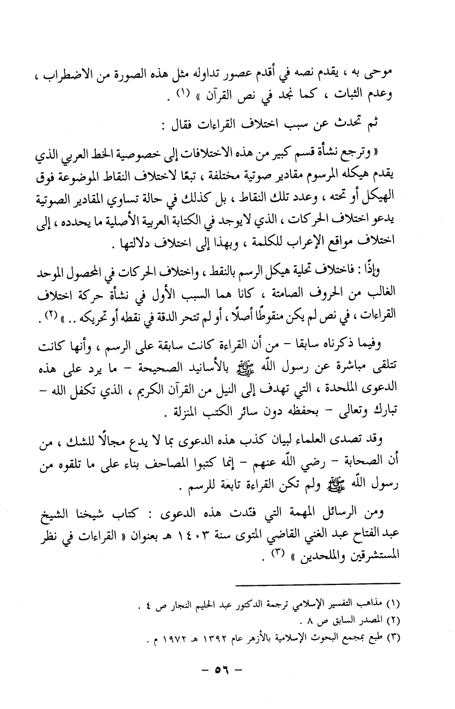 ومن الرسائل المهمة التي فندت هذه الدعوى: كتاب شيخنا الشيخ عبد الفتاح عبد الغني القاضي المتوفى سنة 1403هـ بعنوان "القراءات في نظر المستشرقين والملحدين"3.