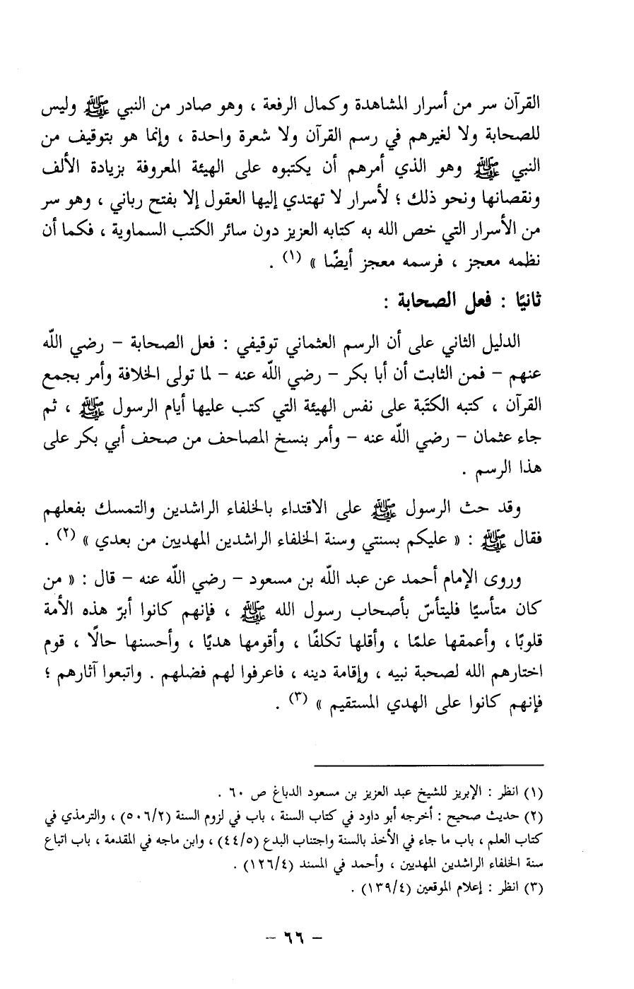 وقد حث الرسول صلى الله عليه وسلم على الاقتداء بالخلفاء الراشدين والتمسك بفعلهم فقال -صلى الله عليه وسلم: "عليكم بسنتي وسنة الخلفاء الراشدين المهديين من بعدي" 2.