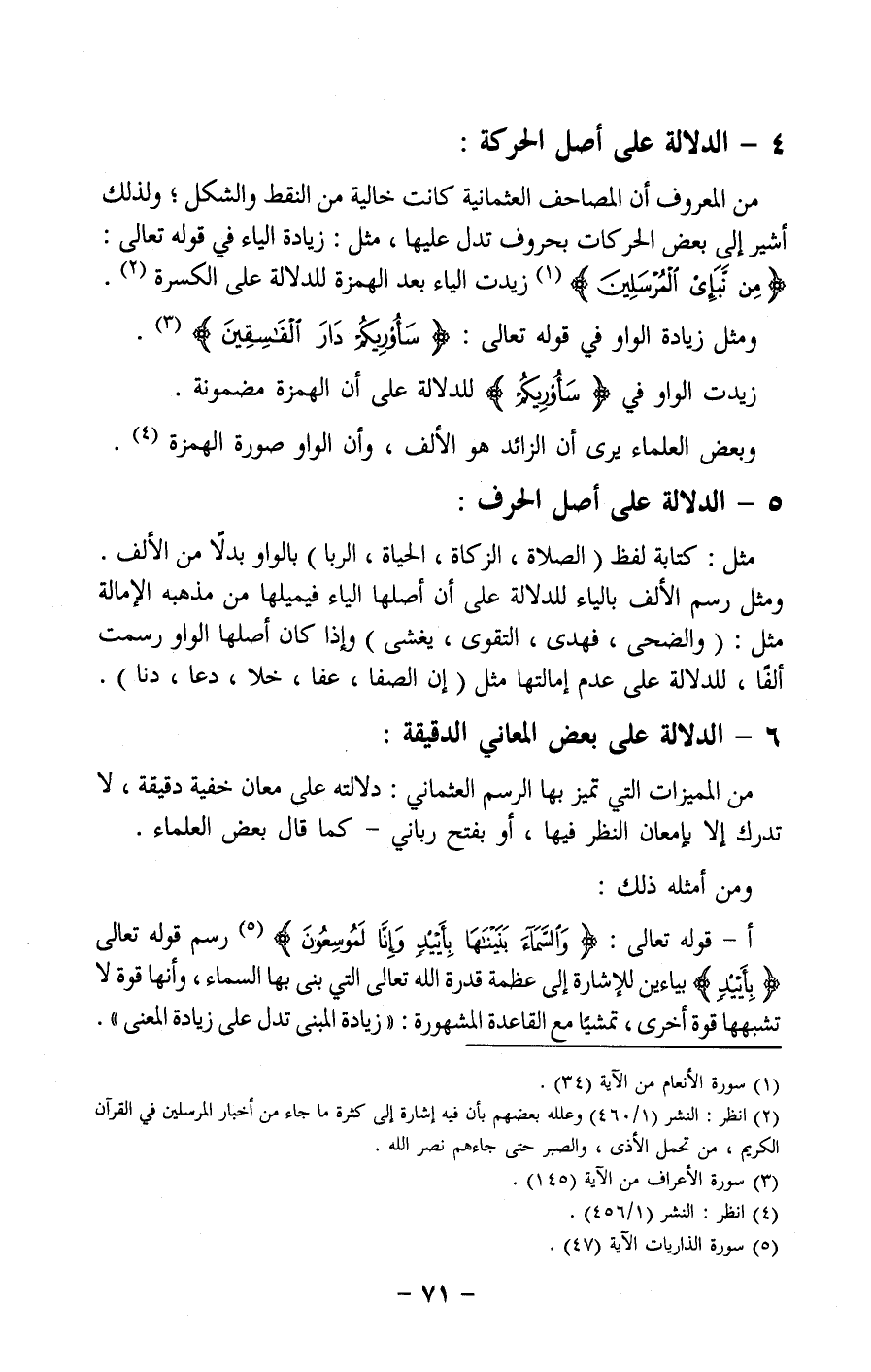 من المعروف أن المصاحف العثمانية كانت خالية من النقط والشكل، ولذلك أشير إلى بعض الحركات بحروف تدل عليها، مثل: زيادة الياء في قوله تعالى: "من نبأى المرسلين"1 زيدت الياء بعد الهمزة للدلالة على الكسرة2.