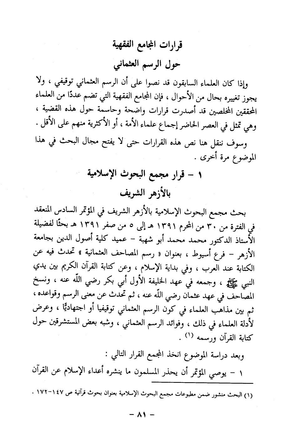 قرارات المجامع الفقهية حول الرسم العثماني:
