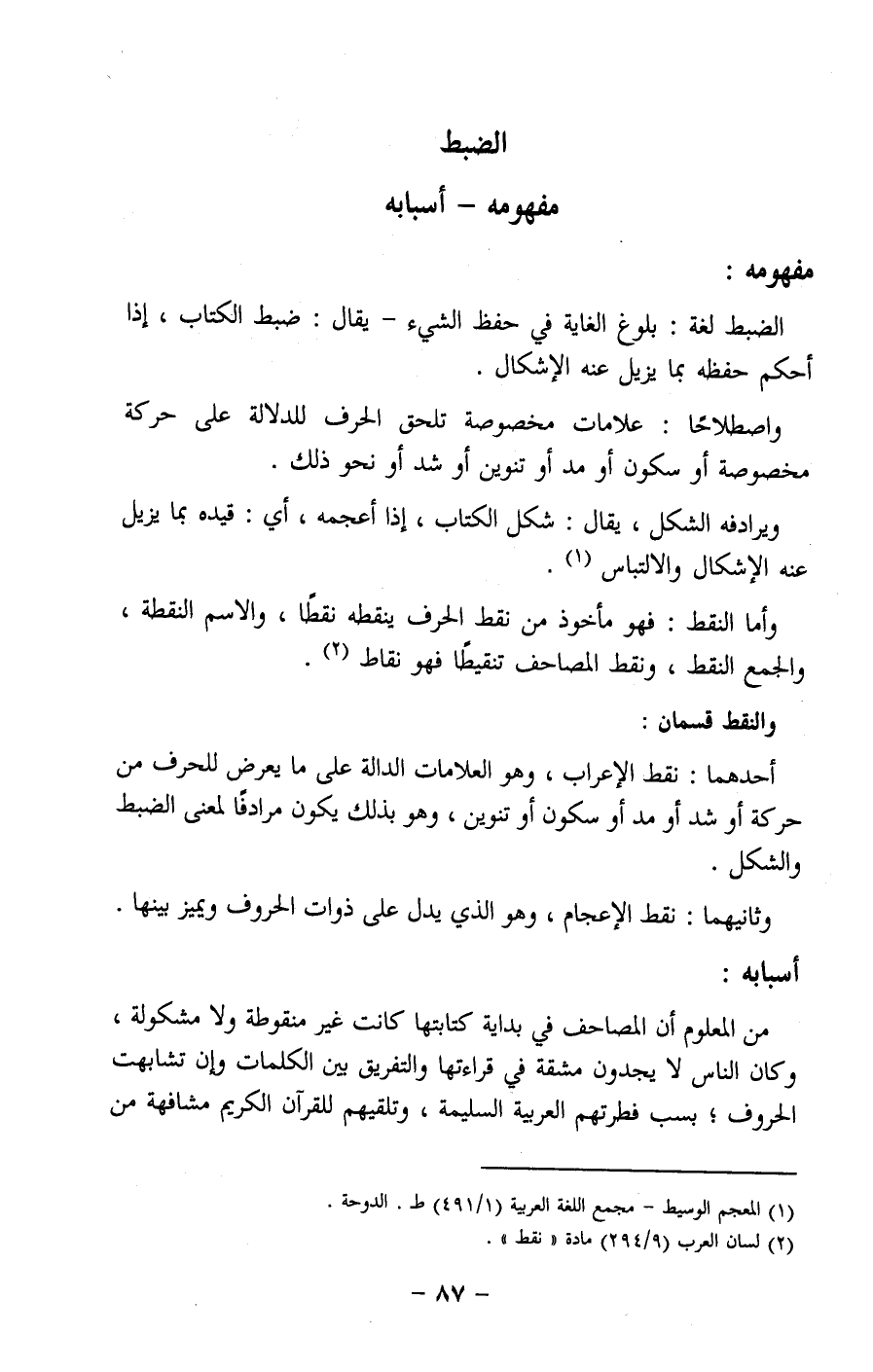 1 المعجم الوسيط، مجمع اللغة العربية "1/ 491" ط. الدوحة.