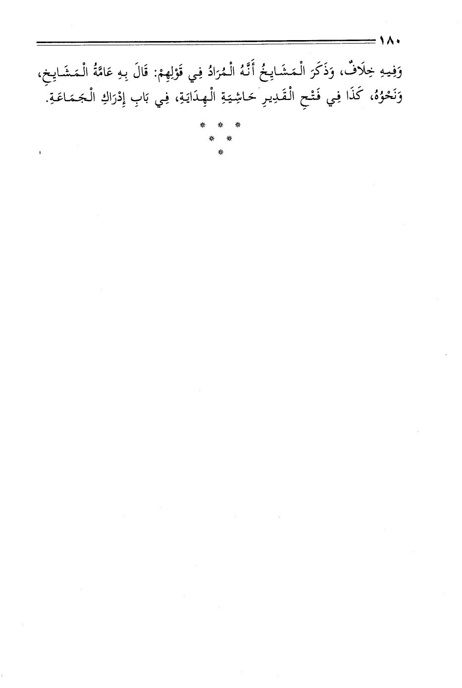 وأما قولى: " جُلُّ الناس "، وقولى " فقهاء الأمصار ": فليس المراد بهم أهل المذهب خاصة، فقوله في الطوات: " وجل الناس لا عمرة عليه " ليست من اصطلاحه، بل هي نص التهذيب، وهي عن مالك، ومراده علماء الصدر الأول.