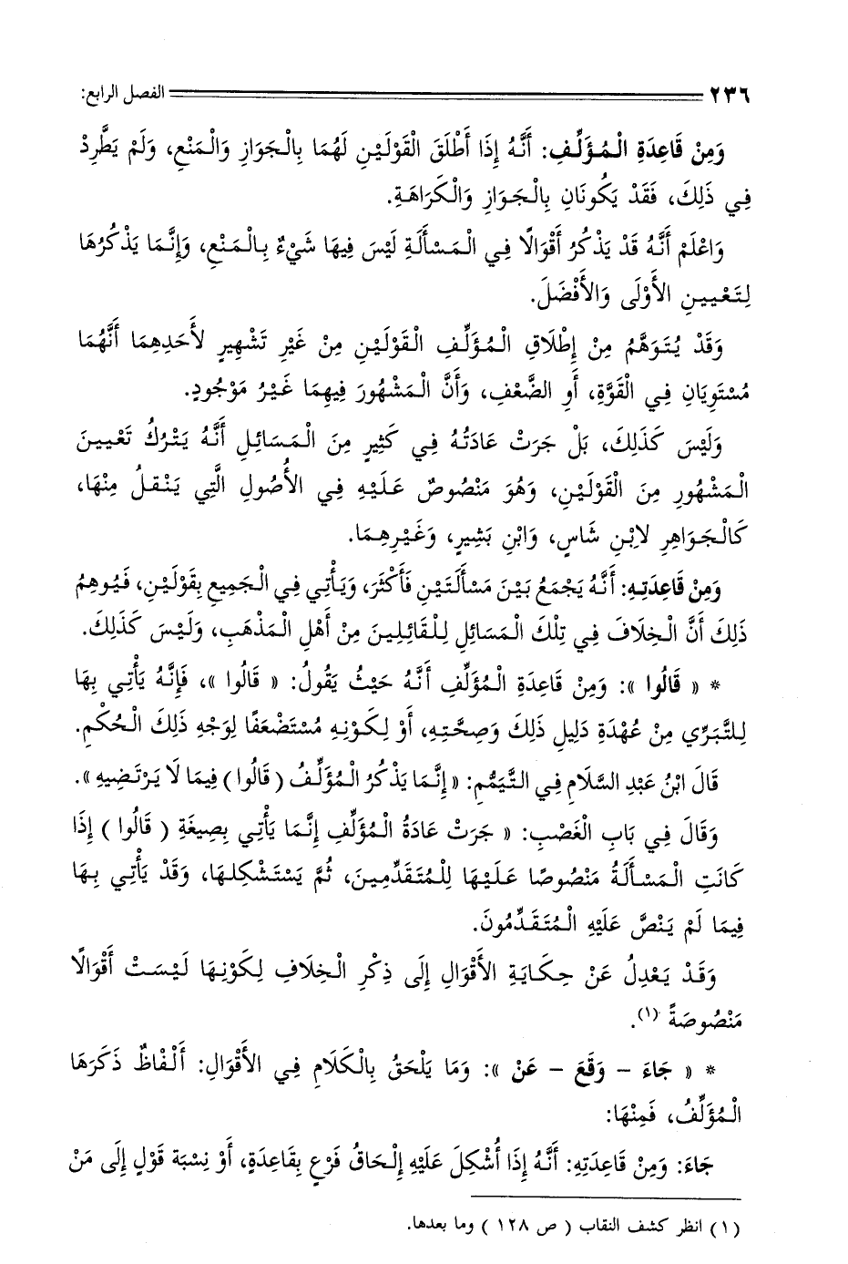 22 - وتارة يطلقه بقوله مثلًا: " ويجوز عند فلان، ولا يجوز عند فلان، أو " فعند فلان كذا، وعند فلان كذا "، أو " الحكم كذا في اختيار فلان.