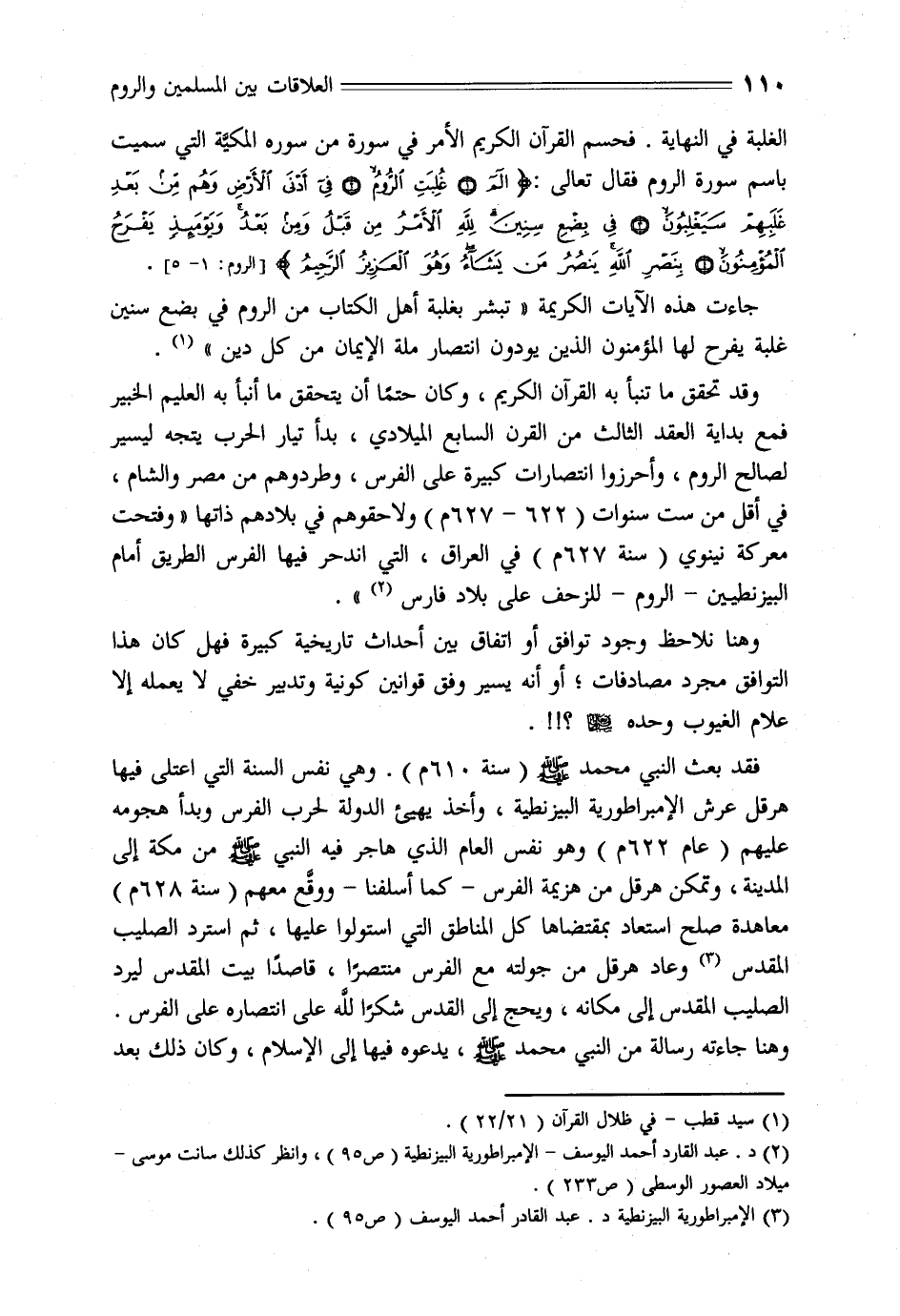 وقد تحقق ما تنبأ به القرآن الكريم، وكان حتما أن يتحقق ما أنبأ به العليم الخبير فمع بداية العقد الثالث من القرن السابع الميلادي، بدأ تيار الحرب يتجه ليسير لصالح الروم، وأحرزوا انتصارات كبيرة على الفرس، وطردوهم من مصر والشام، في أقل من ست سنوات (622- 627 م) ولا حقوهم في بلادهم ذاتها «وفتحت معركة نينوي (سنة 627 م) في العراق، التي اندحر فيها الفرس الطريق أمام البيزنطيين- الروم- للزحف على بلاد فارس «2» » .