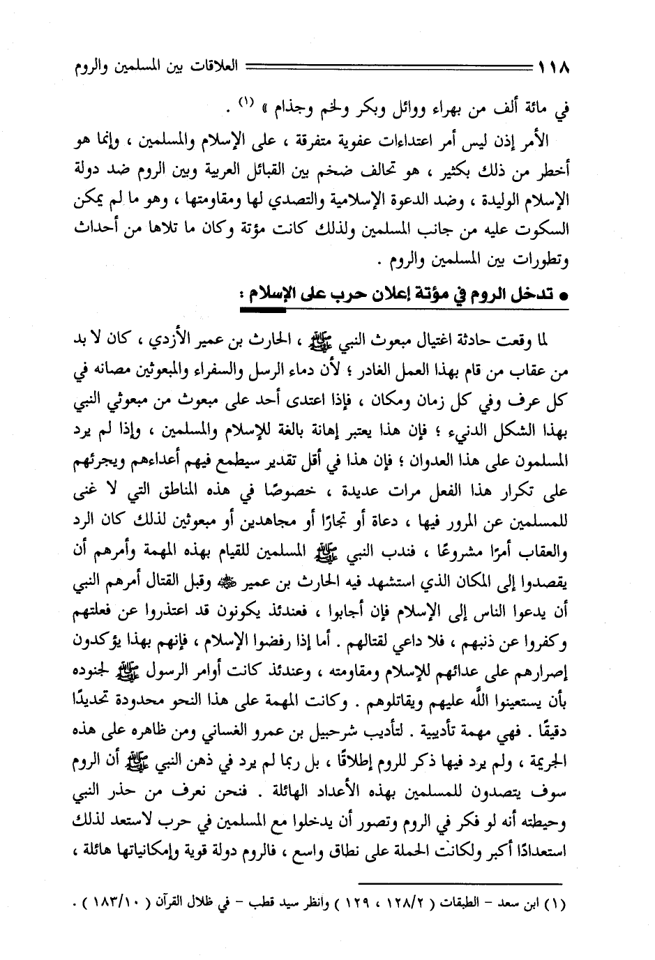 * تدخل الروم في مؤتة إعلان حرب على الإسلام: