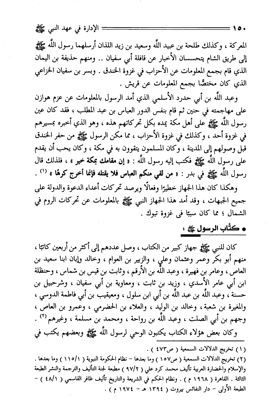 (2) تخريج الدلالات السمعية (ص 157) وما بعدها- نظام الحكومة النبوية (1/ 115) وما بعدها. والإسلام والحضارة العربية تأليف محمد كرد علي (2/ 97) مطبعة لجنة التأليف والترجمة والنشر الطبعة الثالثة. القاهرة (1968 م) . ونظام الحكم في الشريعة والتاريخ تأليف ظافر القاسمي (1/ 48) - الطبعة الأولى- دار النفائس بيروت (1394 هـ- 1974 م) .