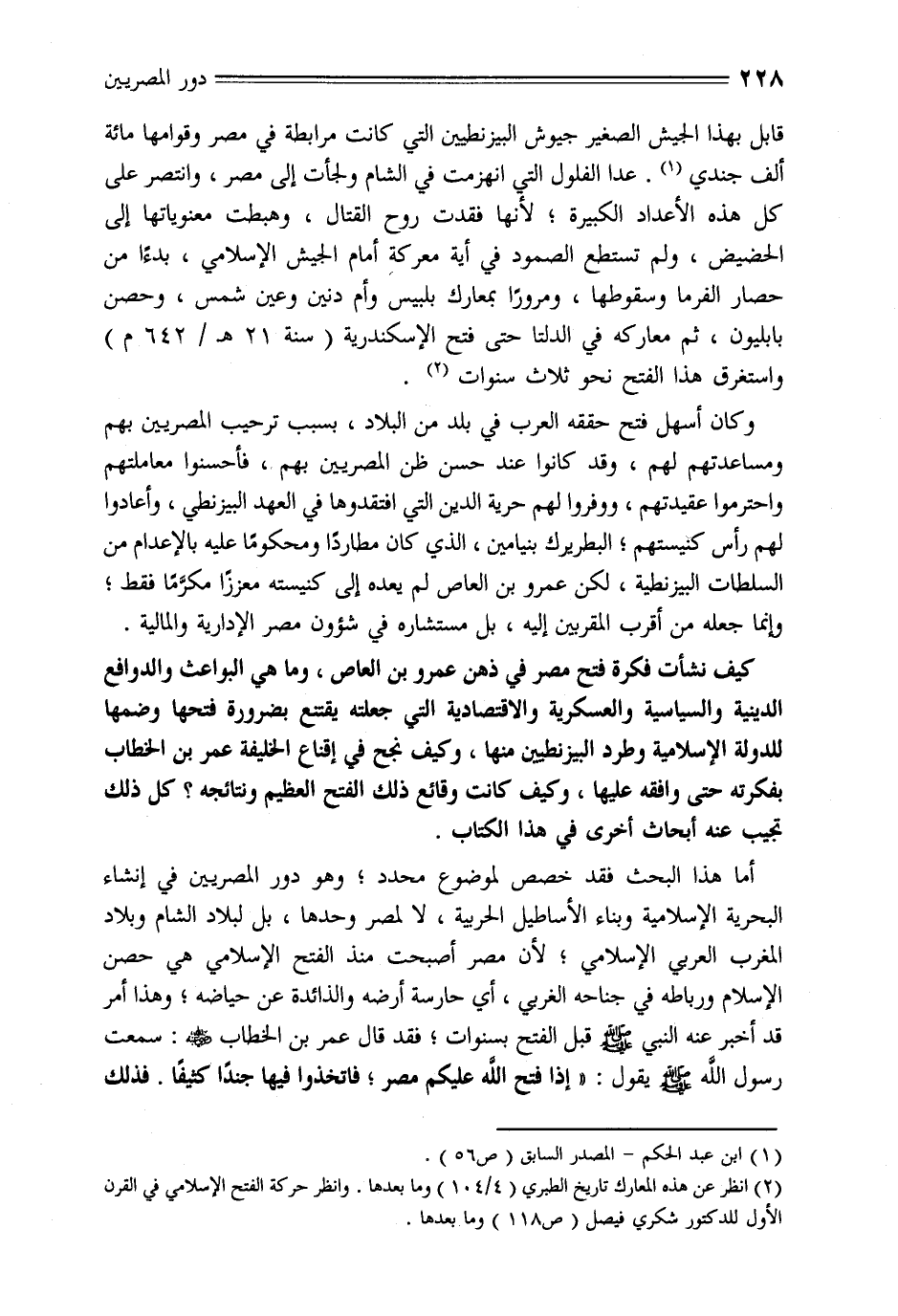 كيف نشأت فكرة فتح مصر في ذهن عمرو بن العاص، وما هي البواعث والدوافع الدينية والسياسية والعسكرية والاقتصادية التي جعلته يقتنع بضرورة فتحها وضمها للدولة الإسلامية وطرد البيزنطيين منها، وكيف نجح في إقناع الخليفة عمر بن الخطاب بفكرته حتى وافقه عليها، وكيف كانت وقائع ذلك الفتح العظيم ونتائجه؟ كل ذلك تجيب عنه أبحاث أخرى في هذا الكتاب.