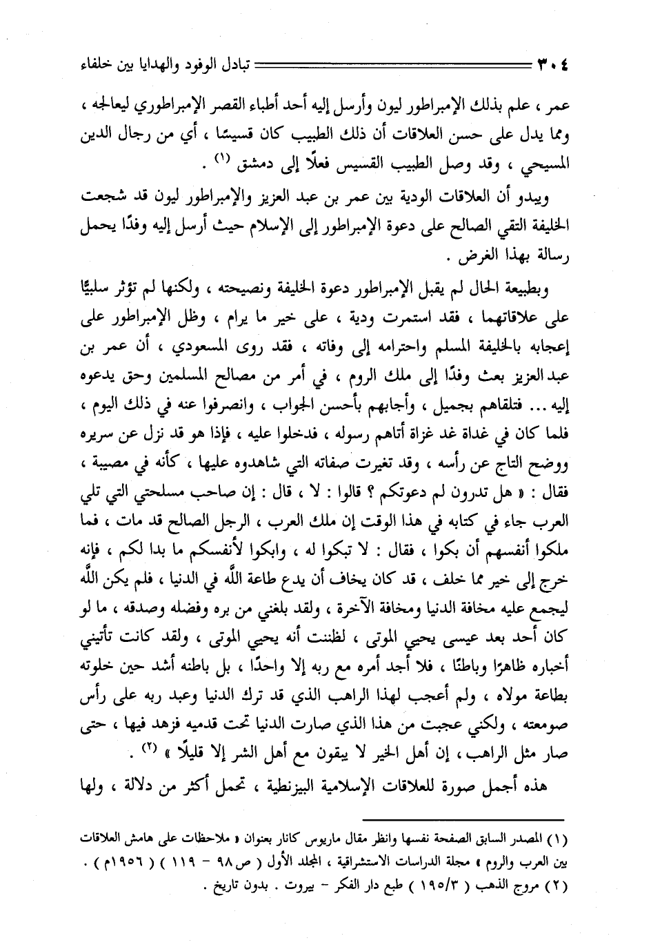 (1) المصدر السابق الصفحة نفسها وانظر مقال ماريوس كانار بعنوان «ملاحظات على هامش العلاقات بين العرب والروم» مجلة الدراسات الاستشراقية، المجلد الأول (ص 98- 119) (1956 م) .