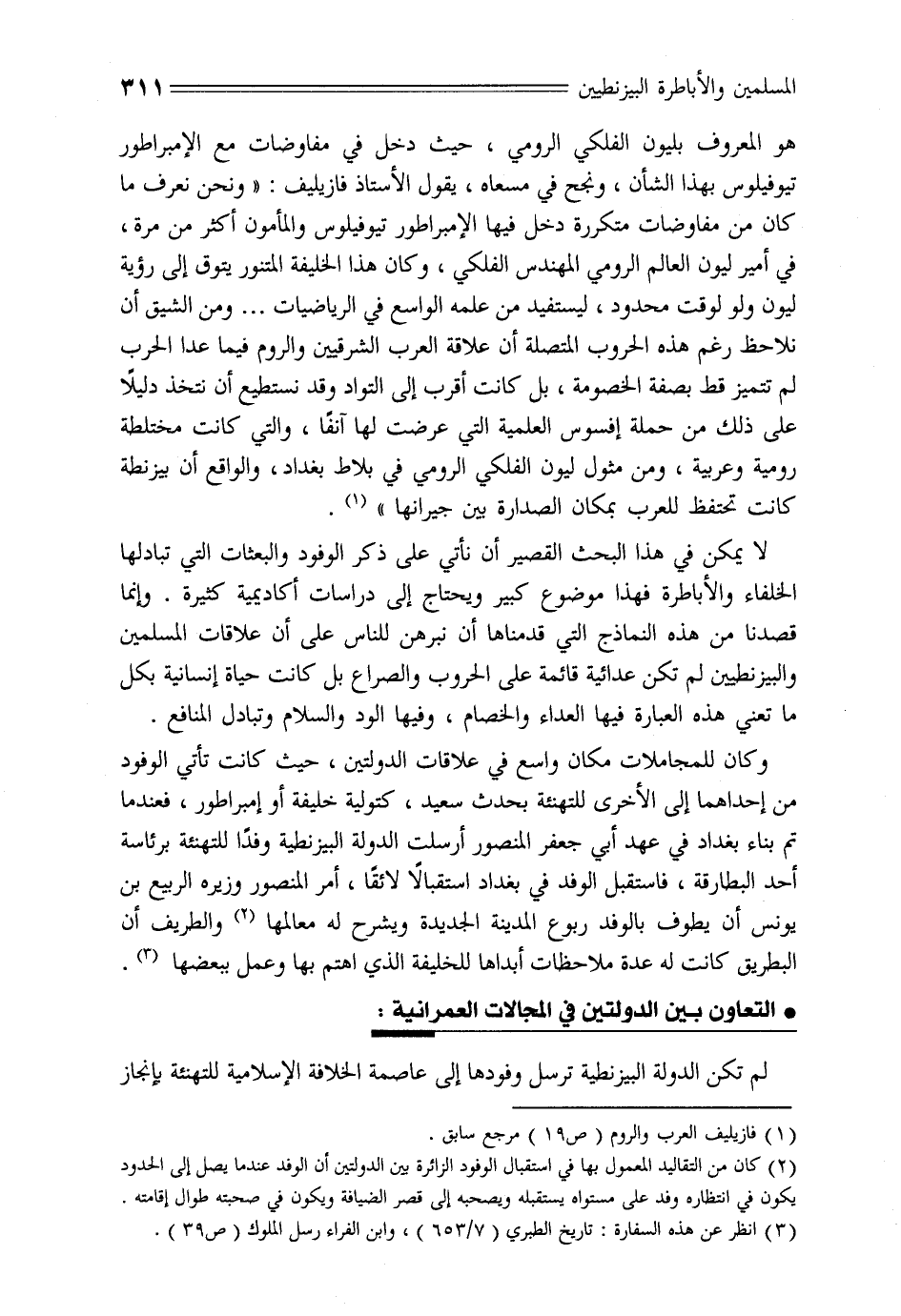 لم تكن الدولة البيزنطية ترسل وفودها إلى عاصمة الخلافة الإسلامية للتهنئة بإنجاز