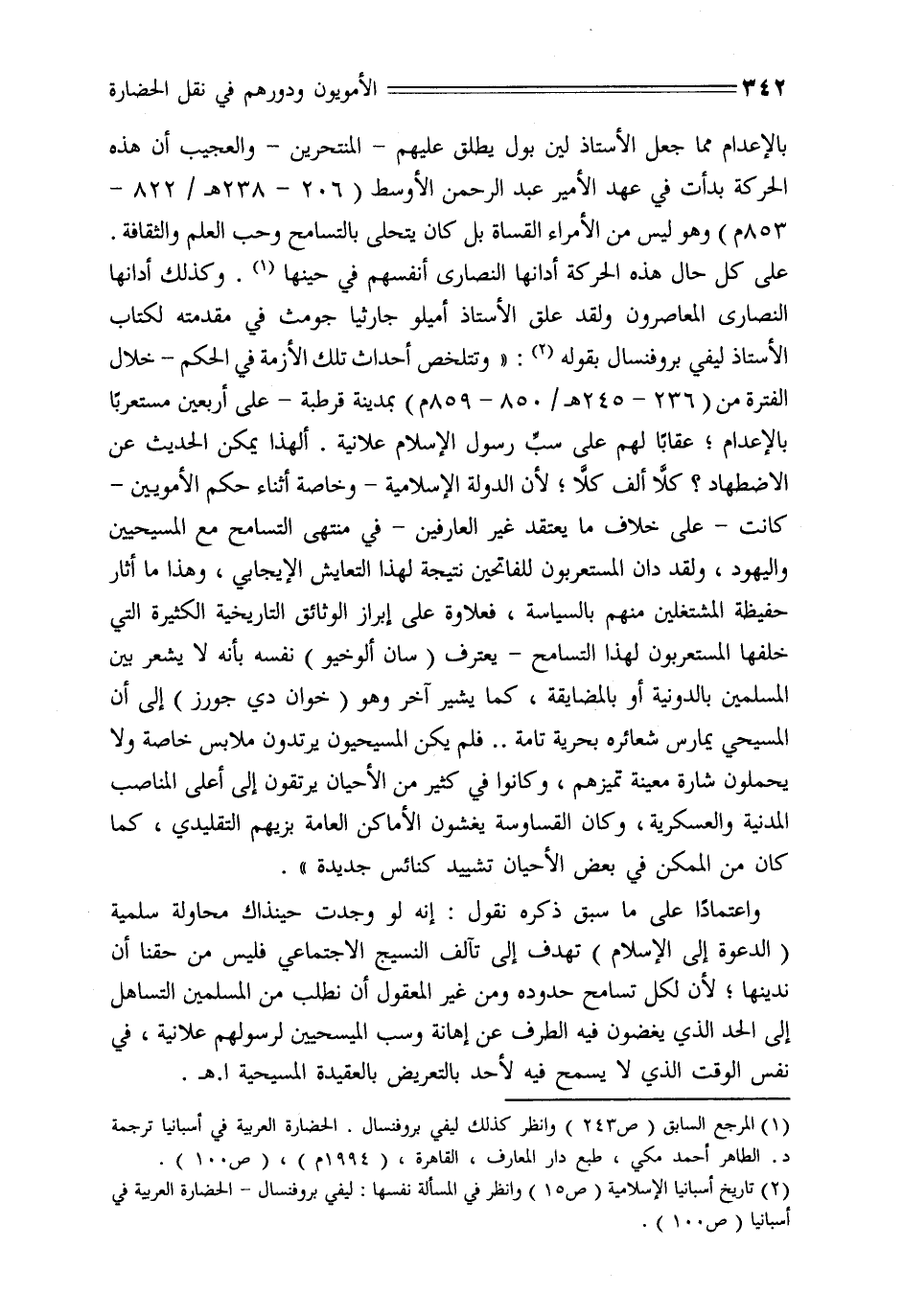 (1) المرجع السابق (ص 243) وانظر كذلك ليفي بروفنسال. الحضارة العربية في أسبانيا ترجمة د. الطاهر أحمد مكي، طبع دار المعارف، القاهرة، (1994 م) ، (ص 100) .