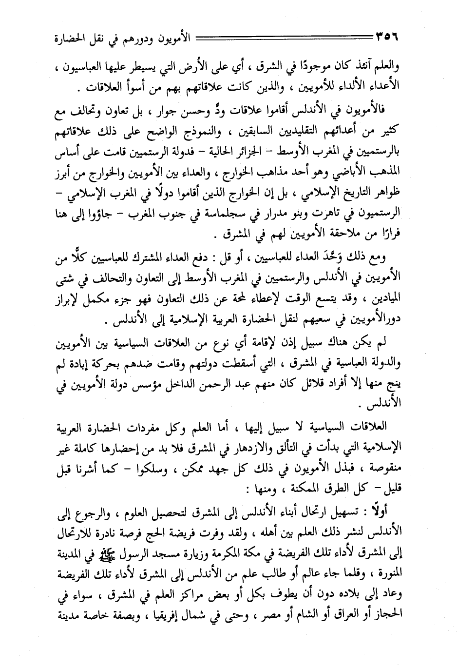 العلاقات السياسية لا سبيل إليها، أما العلم وكل مفردات الحضارة العربية الإسلامية التي بدأت في التألق والازدهار في المشرق فلا بد من إحضارها كاملة غير منقوصة، فبذل الأمويون في ذلك كل جهد ممكن، وسلكوا- كما أشرنا قبل قليل- كل الطرق الممكنة، ومنها: