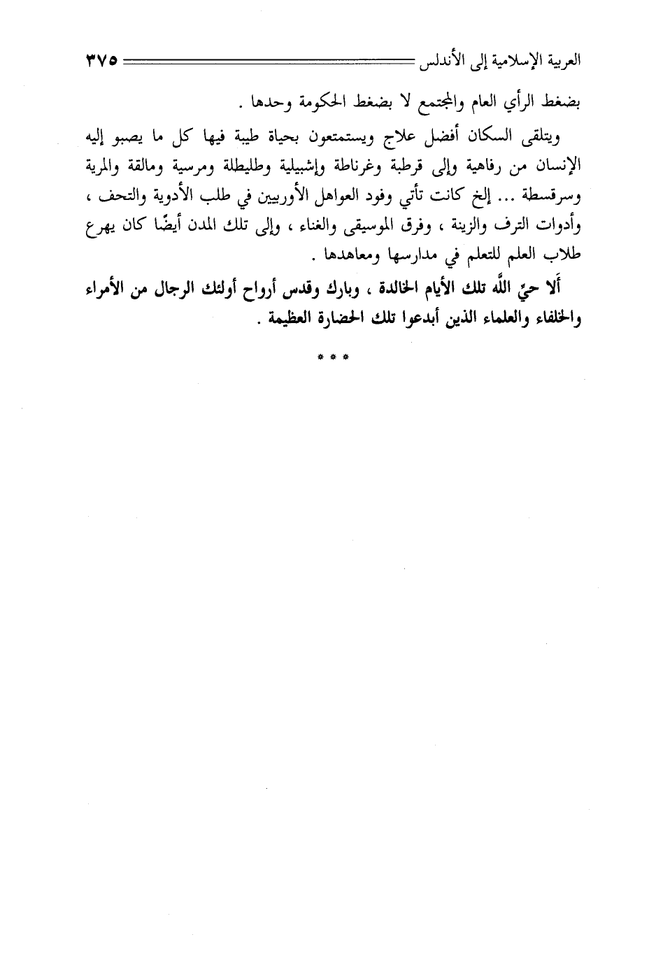 ألا حيّ الله تلك الأيام الخالدة، وبارك وقدس أرواح أولئك الرجال من الأمراء والخلفاء والعلماء الذين أبدعوا تلك الحضارة العظيمة.