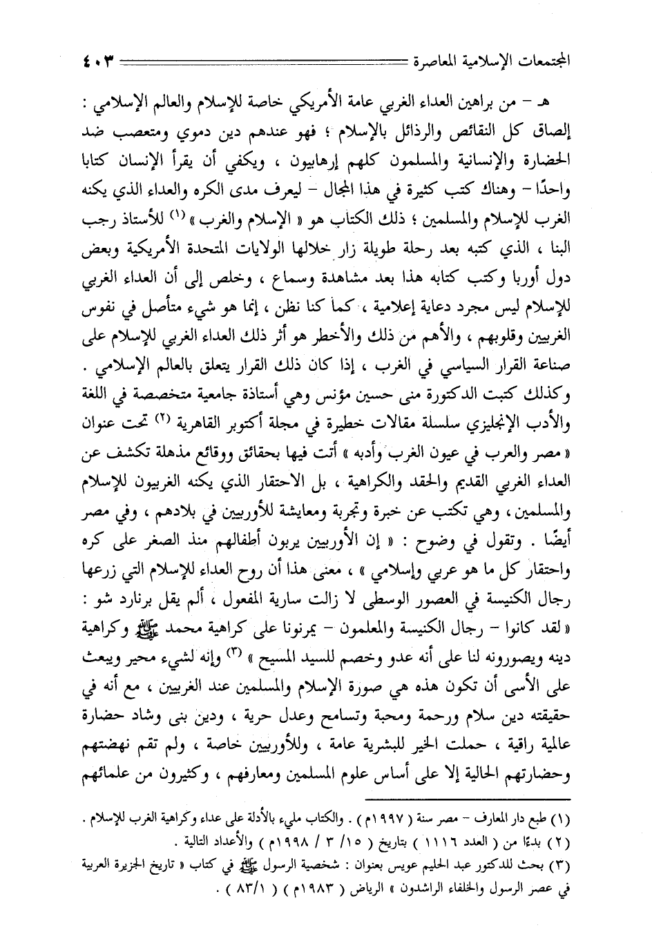 (1) طبع دار المعارف- مصر سنة (1997 م) . والكتاب مليء بالأدلة على عداء وكراهية الغرب للإسلام.