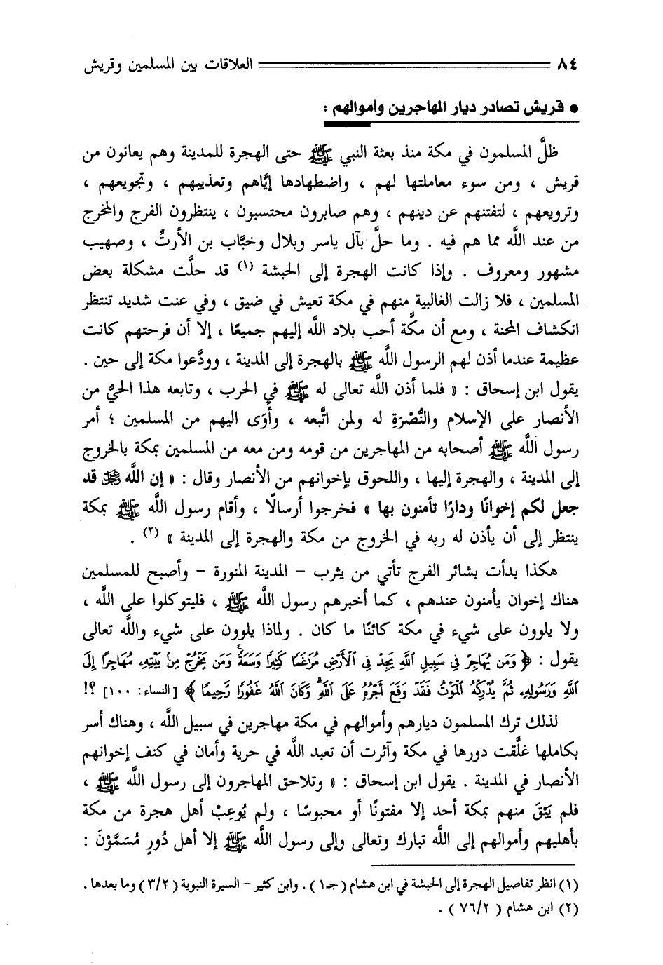 * قريش تصادر ديار المهاجرين واموالهم: