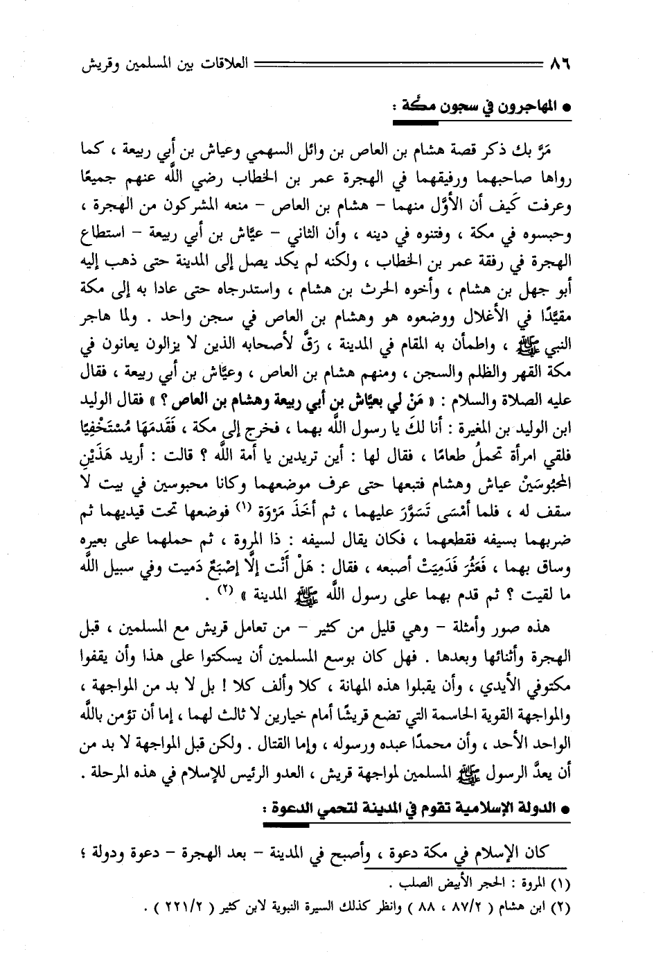 (2) ابن هشام (2/ 87، 88) وانظر كذلك السيرة النبوية لابن كثير (2/ 221) .