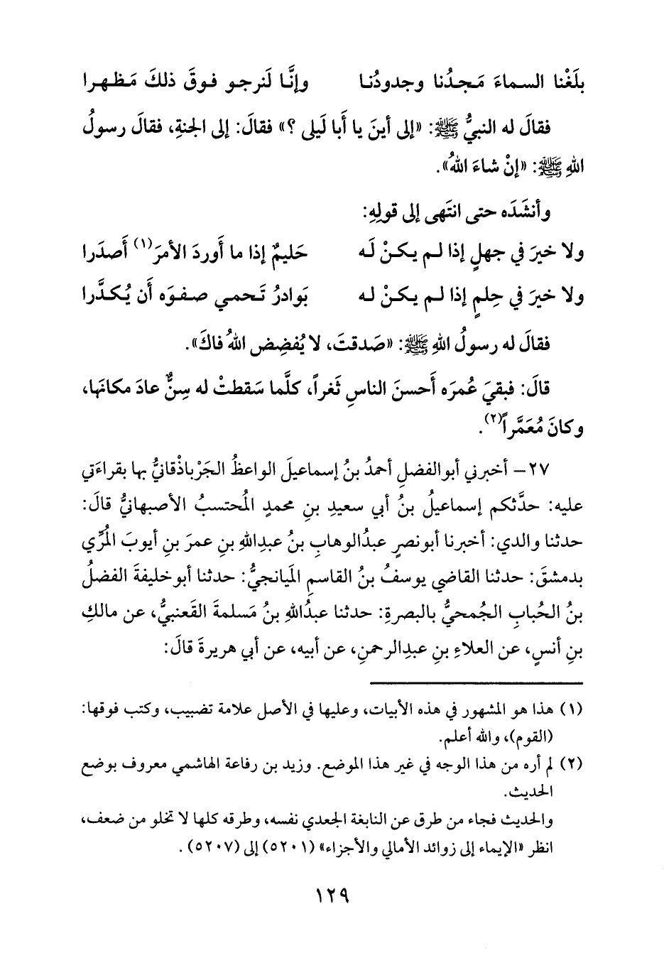 والحديث فجاء من طرق عن النابغة الجعدي نفسه، وطرقه كلها لا تخلو من ضعف، انظر «الإيماء إلى زوائد الأمالي والأجزاء» (5201) إلى (5207).