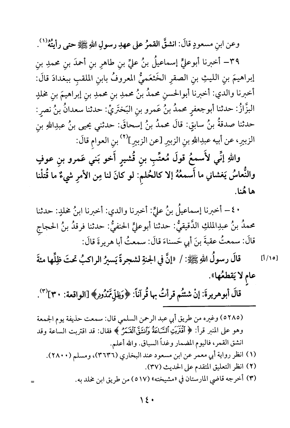 وعن ابنِ مسعودٍ قالَ: انشقَّ القمرُ على عهدِ رسولِ اللهِ صلى الله عليه وسلم حتى رأيتُهُ (¬1).