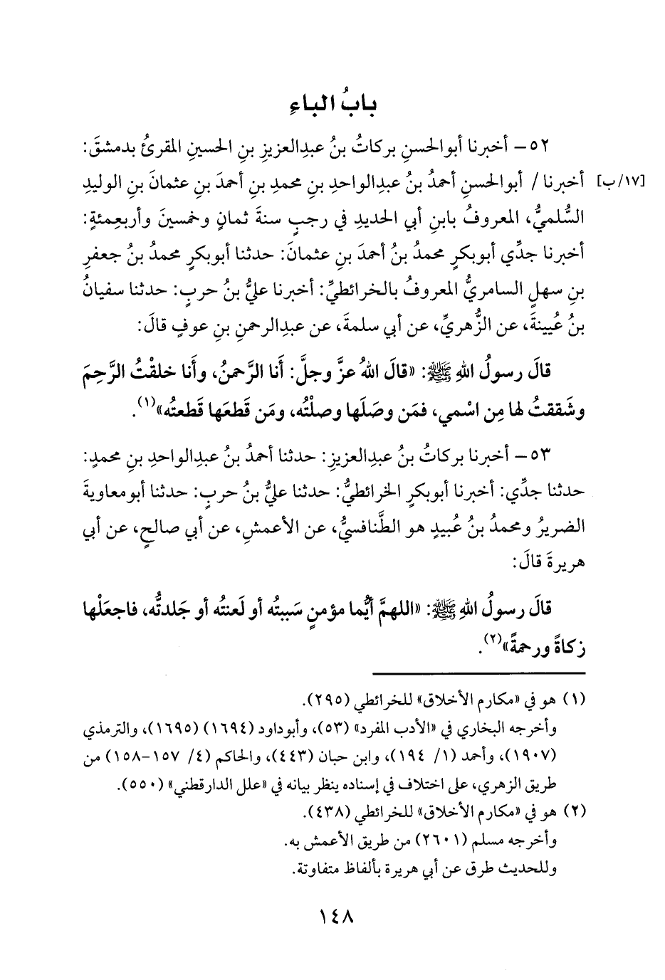 (¬2) هو في «مكارم الأخلاق» للخرائطي (438).