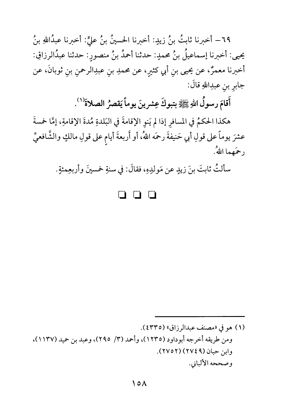 69 - أخبرنا ثابتُ بنُ زيدٍ: أخبرنا الحسينُ بنُ عليٍّ: أخبرنا عبدُ اللهِ بنُ يحيى: أخبرنا إسماعيلُ بنُ محمدٍ: حدثنا أحمدُ بنُ منصورٍ: حدثنا عبدُ الرزاقِ: أخبرنا معمرٌ، عن يحيى بنِ أبي كثيرٍ، عن محمدِ بنِ عبدِ الرحمنِ بنِ ثوبانَ، عن جابرِ بنِ عبدِ اللهِ قالَ: