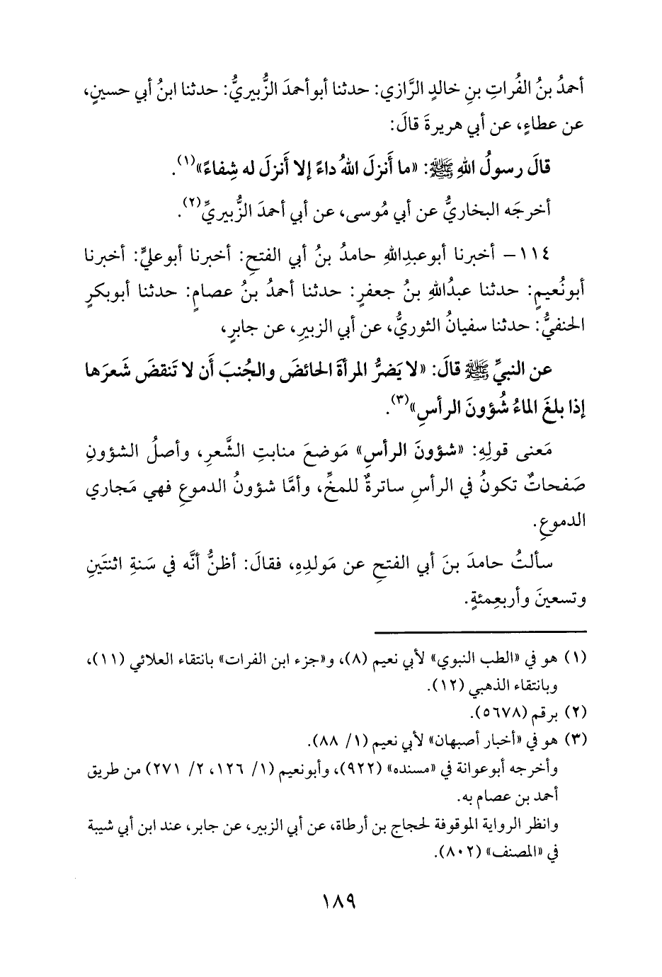 114 - أخبرنا أبو عبدِ اللهِ حامدُ بنُ أبي الفتحِ: أخبرنا أبو عليٍّ: أخبرنا أبو نُعيمٍ: حدثنا عبدُ اللهِ بنُ جعفرٍ: حدثنا أحمدُ بنُ عصامٍ: حدثنا أبو بكرٍ الحنفيُّ: حدثنا سفيانُ الثوريُّ، عن أبي الزبيرِ، عن جابرٍ،