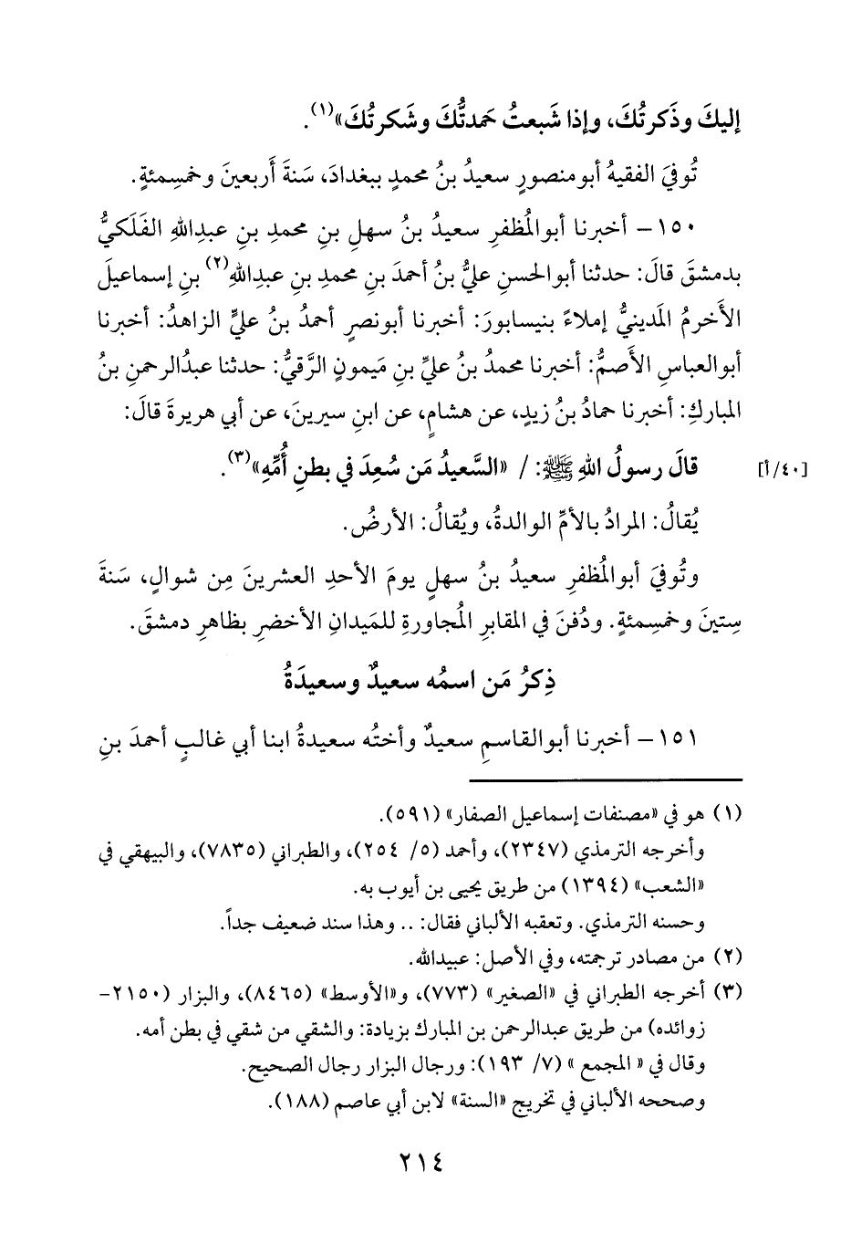 ذِكرُ مَن اسمُه سعيدٌ وسعيدَةُ