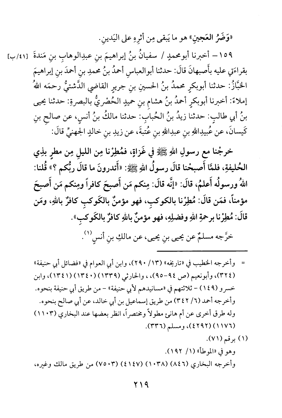 159 - أخبرنا أبو محمدٍ / سفيانُ بنُ إبراهيمَ بنِ عبدِ الوهابِ بنِ مَندةَ بقراءَتي عليه بأَصبهانَ قالَ: حدثنا أبو العباسِ أحمدُ بنُ محمدِ بنِ أحمدَ بنِ إبراهيمَ الخبَّازُ: حدثنا أبو بكرٍ محمدُ بنُ الحسينِ بنِ جريرٍ القاضي الدَّشتيُّ رحمَه اللهُ إملاءً: أخبرنا أبو بكرٍ أحمدُ بنُ هشامِ بنِ حميدٍ الحُصْريُّ بالبصرةِ: حدثنا يحيى بنُ أبي طالبٍ: حدثنا زيدُ بنُ الحُبابِ: حدثنا مالكُ بنُ أنسٍ، عن صالحِ بنِ كَيسانَ، عن عُبيدِ اللهِ بنِ عبدِ اللهِ بنِ عُتبةَ، عن زيدِ بنِ خالدٍ الجهنيِّ قالَ: