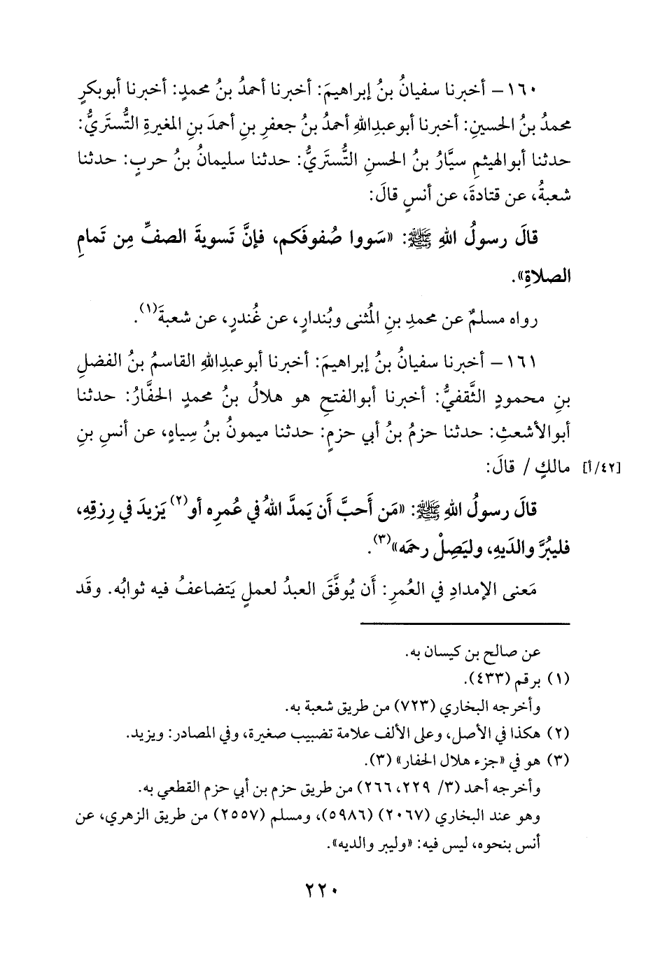 160 - أخبرنا سفيانُ بنُ إبراهيمَ: أخبرنا أحمدُ بنُ محمدٍ: أخبرنا أبو بكرٍ محمدُ بنُ الحسينِ: أخبرنا أبو عبدِ اللهِ أحمدُ بنُ جعفرِ بنِ أحمدَ بنِ المغيرةِ التُّستَريُّ: حدثنا أبو الهيثمِ سيَّارُ بنُ الحسنِ التُّستَريُّ: حدثنا سليمانُ بنُ حربٍ: حدثنا شعبةُ، عن قتادةَ، عن أنسٍ قالَ: